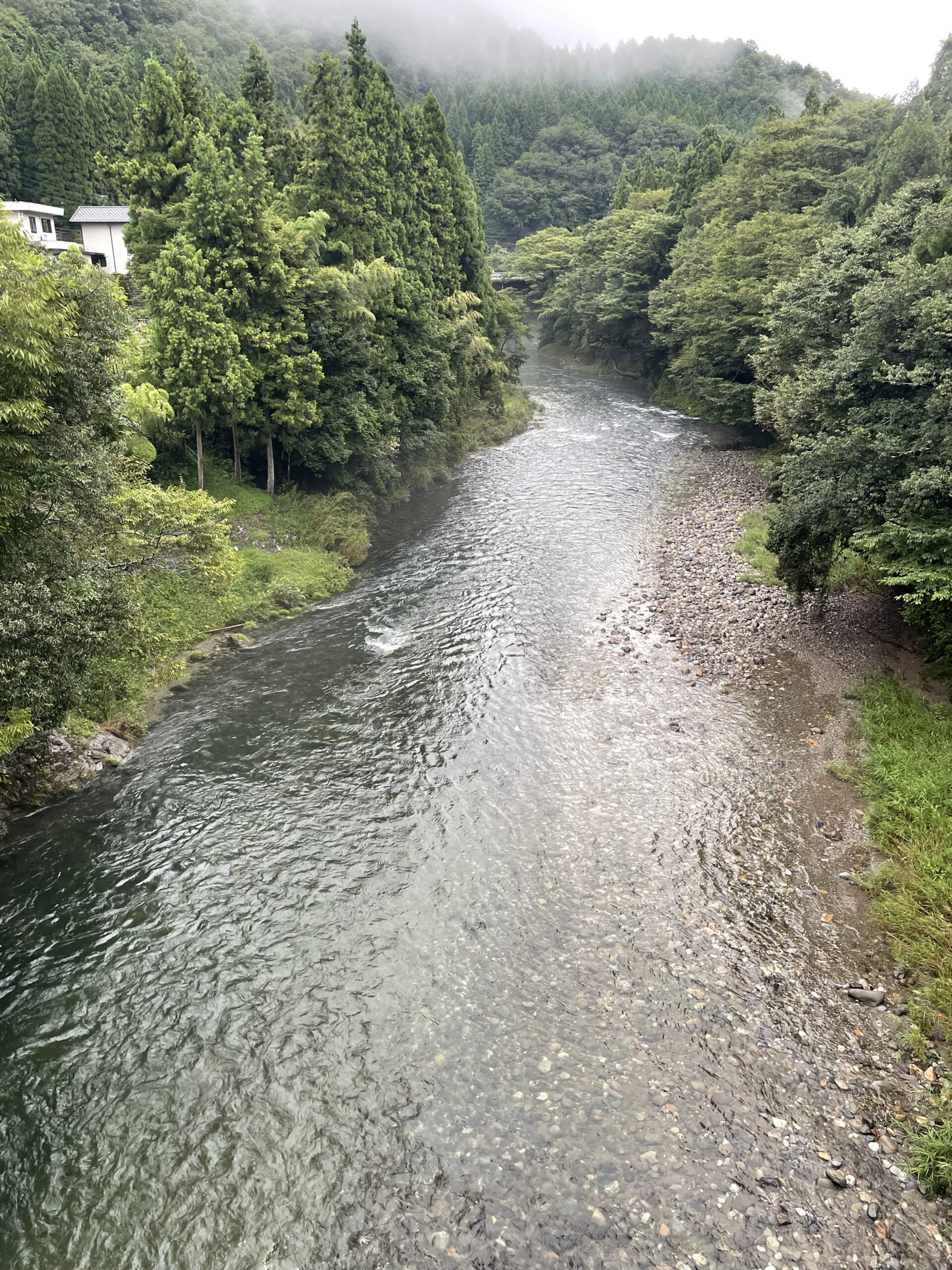 川の水位は50センチ前後高く濁りはほぼありません。川霧が少し出ています。天気は今は曇りです。