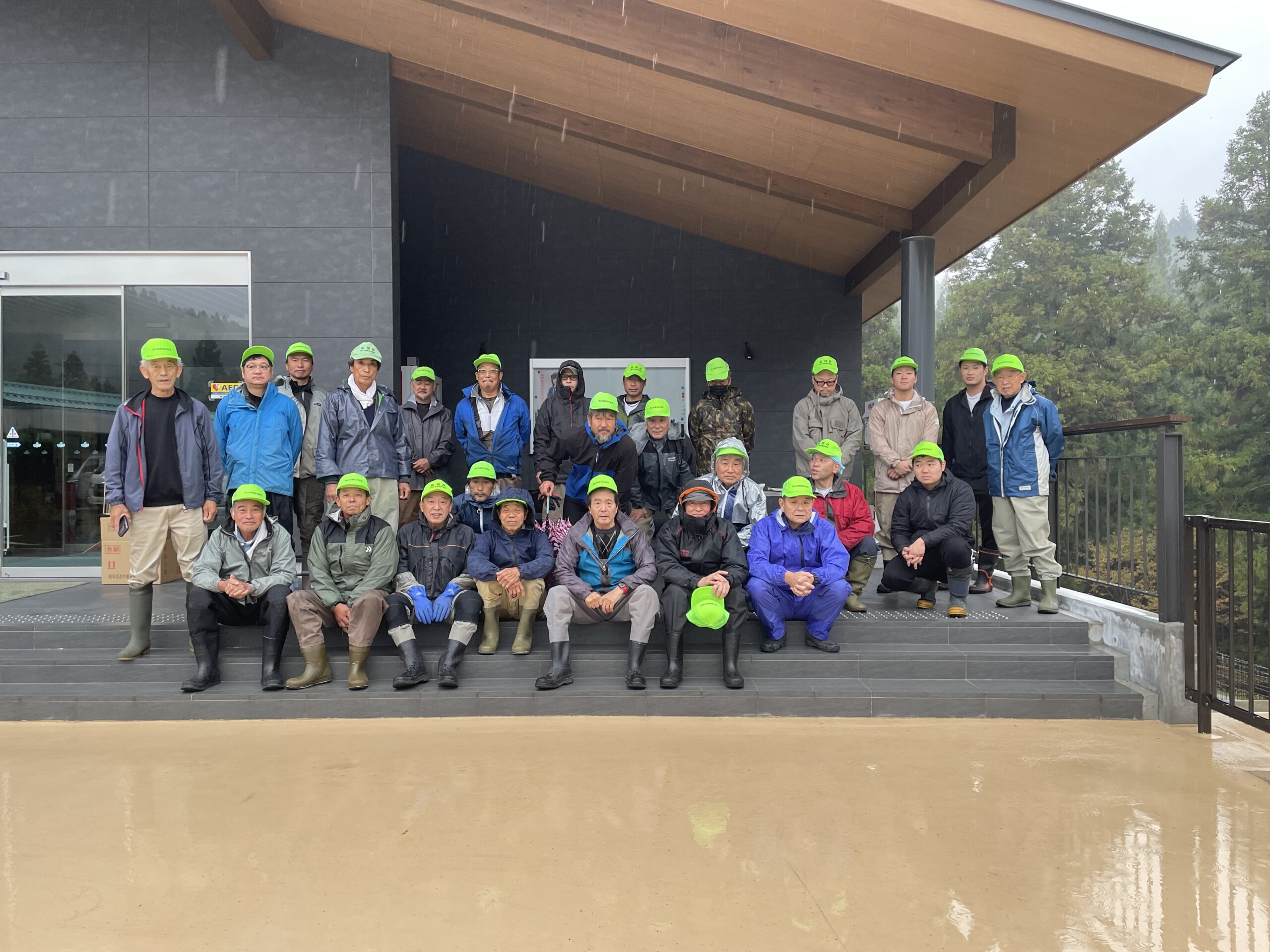 11月9日 組合員他 25人で朝から雨の中 発眼卵埋設作業をしました
