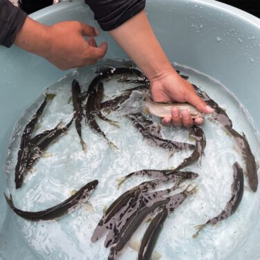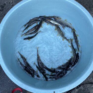 地元の谷口くん、鮎釣りの釣果、佐野不動産下で友達3人と友釣り15匹前後でした。川遊びが多いです。